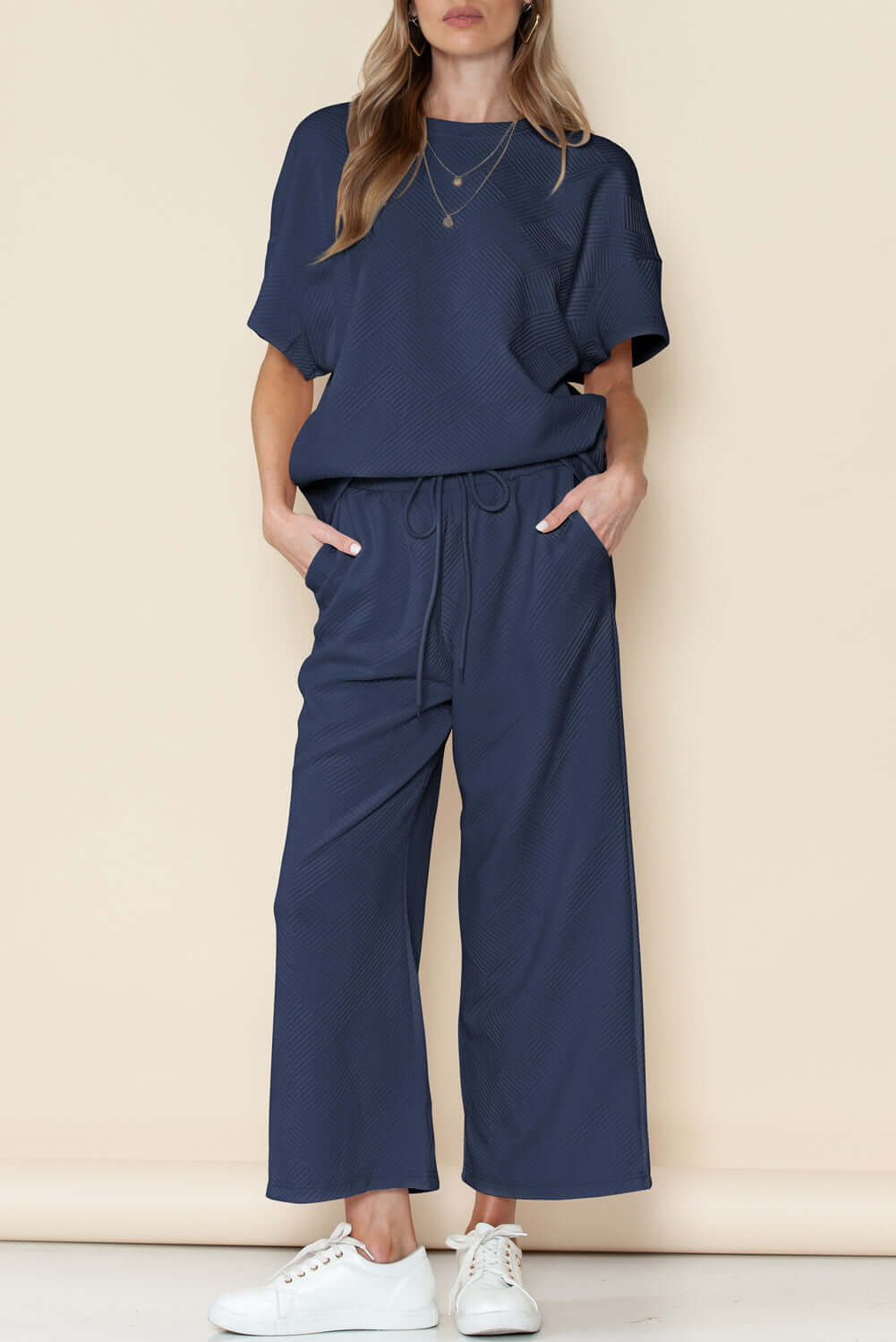 Effortlessly stylish and oh-so-comfy, this chic clothing set is a must-have for your wardrobe. The textured fabric gives it a trendy edge, making it perfect for both lounging and stepping out in style. The relaxed fit keeps things breezy, while the round-neck top and elastic-waist pants ensure all-day comfort. Dress it up with accessories or keep it casual—either way, you’ll look effortlessly put together.